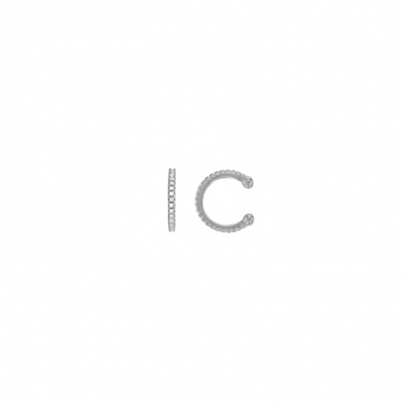 Un faux piercing d’oreille en argent 925/1000 platiné, délicatement pavé d’oxydes scintillants pour un éclat lumineux sans perçage.